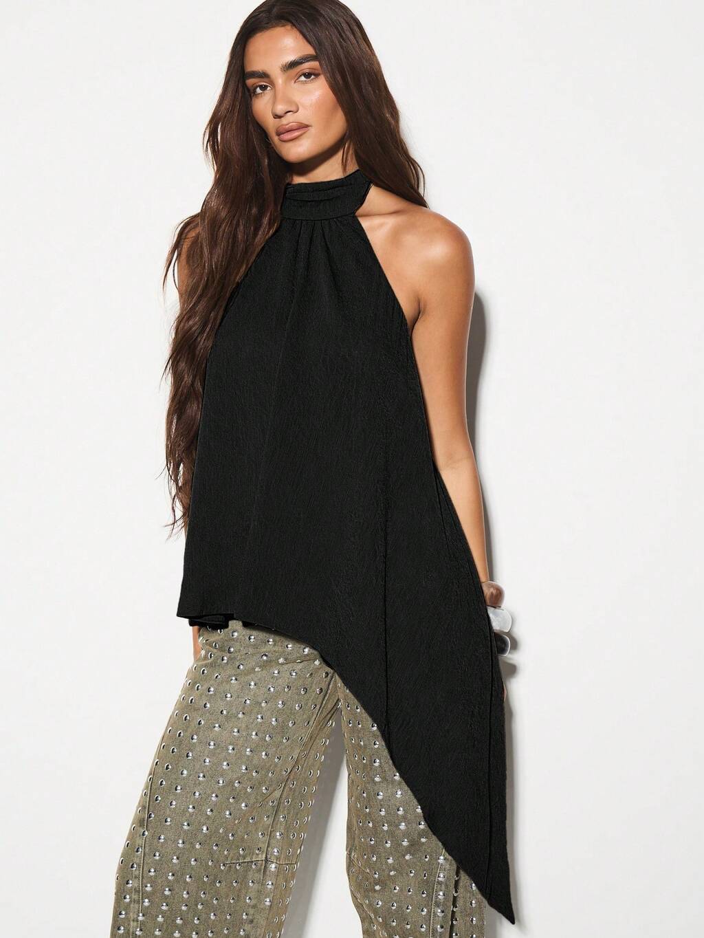 KIZN Halter Neck Asymmetric Hem Top