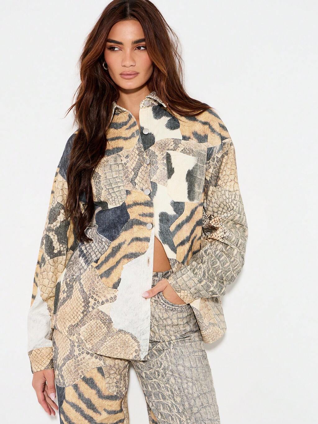 KIZN Chemise oversize en cuir verni à motif crocodile