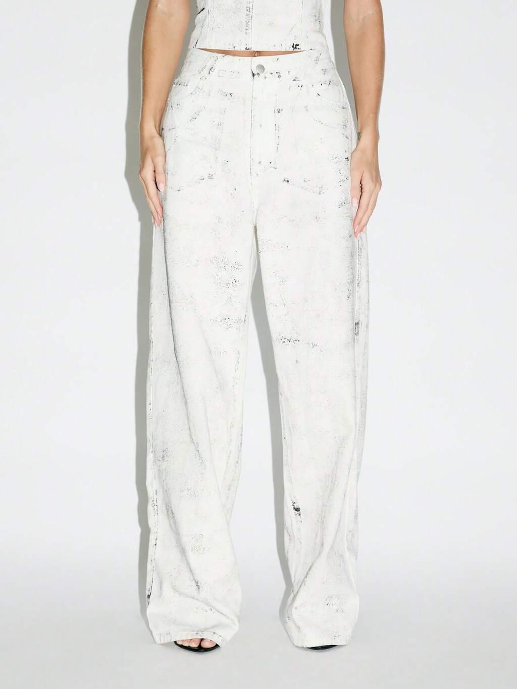 KIZN Jeans in denim a gamba larga con effetto vernice screpolata e vestibilità ampia