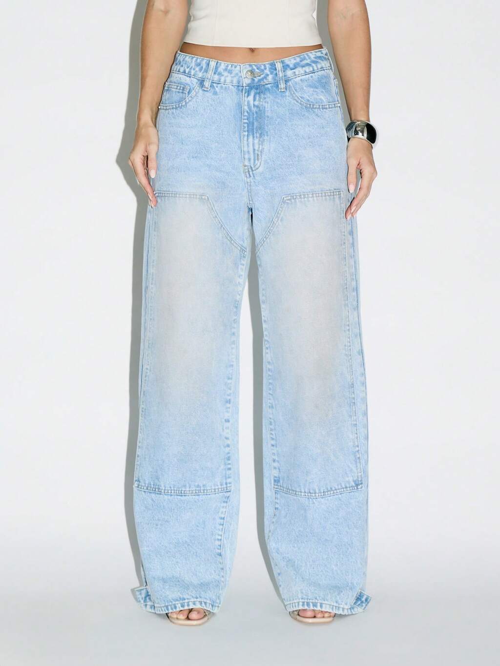 KIZN 패널 디테일이 있는 하이라이즈 와이드 레그 카펜터 진