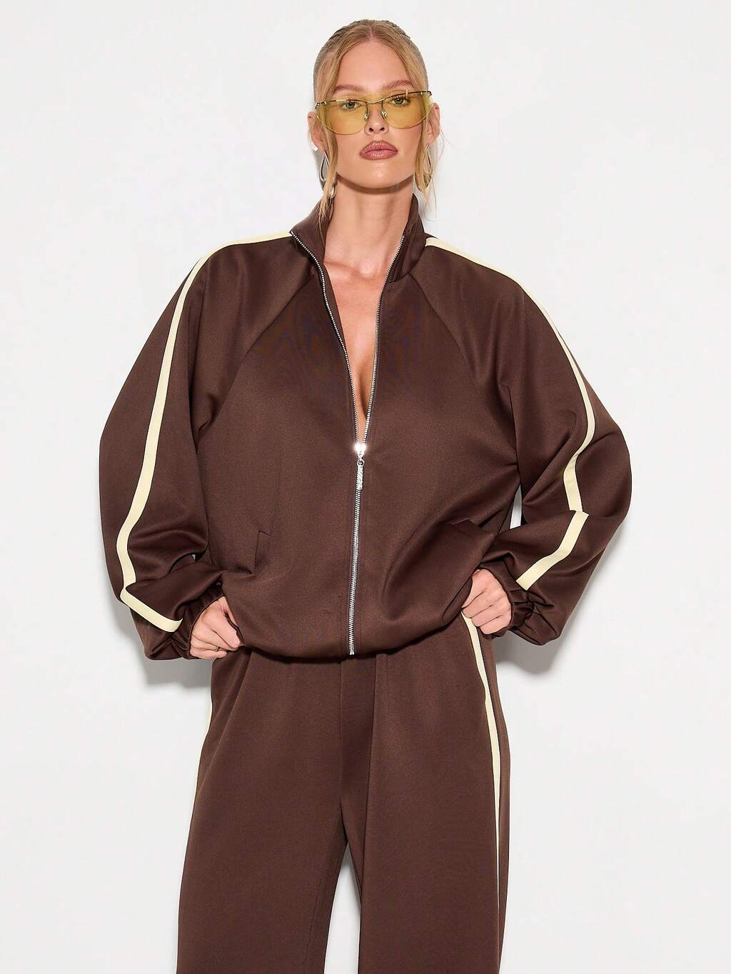 KIZN 사이드 스트라이프 디테일이 있는 풀 지퍼 트랙 재킷