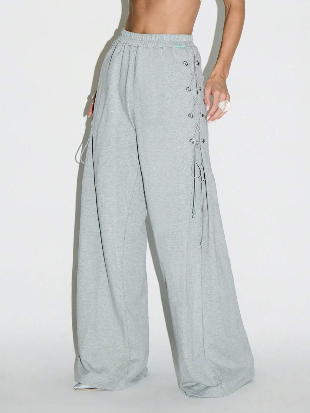 KIZN Spodnie dresowe z szerokimi nogawkami i sznurowaniem z boku